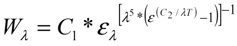 この方程式は、波長、温度T、放射パワーの関係を記述している